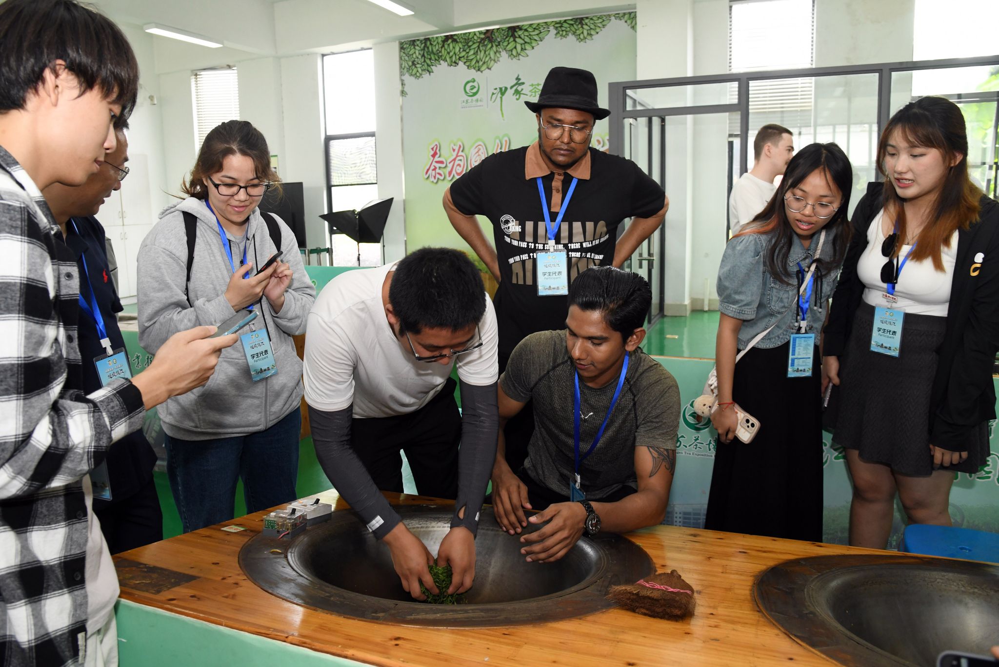 开云足球体育_开云足球(中国)海外教育学院直属党支部书记王丽敏为留学生讲授茶文化知识,留学生前往江苏茶博园体验了采茶、制茶、品茶等全过程。