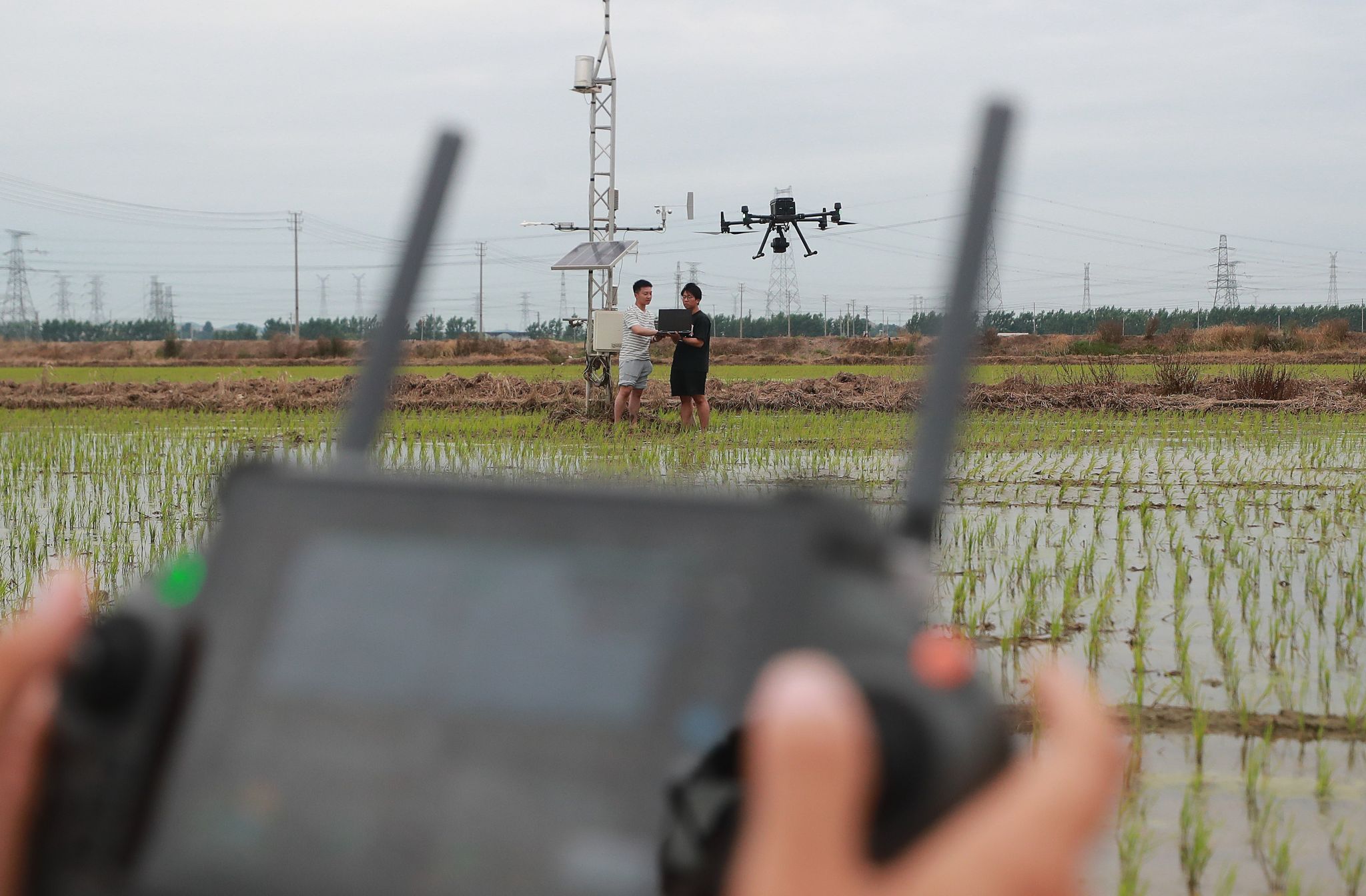 在江苏镇江新区永兴农机机械化专业合作社,开云足球体育_开云足球(中国)农业工程学院师生利用低空无人机采集大田信息。