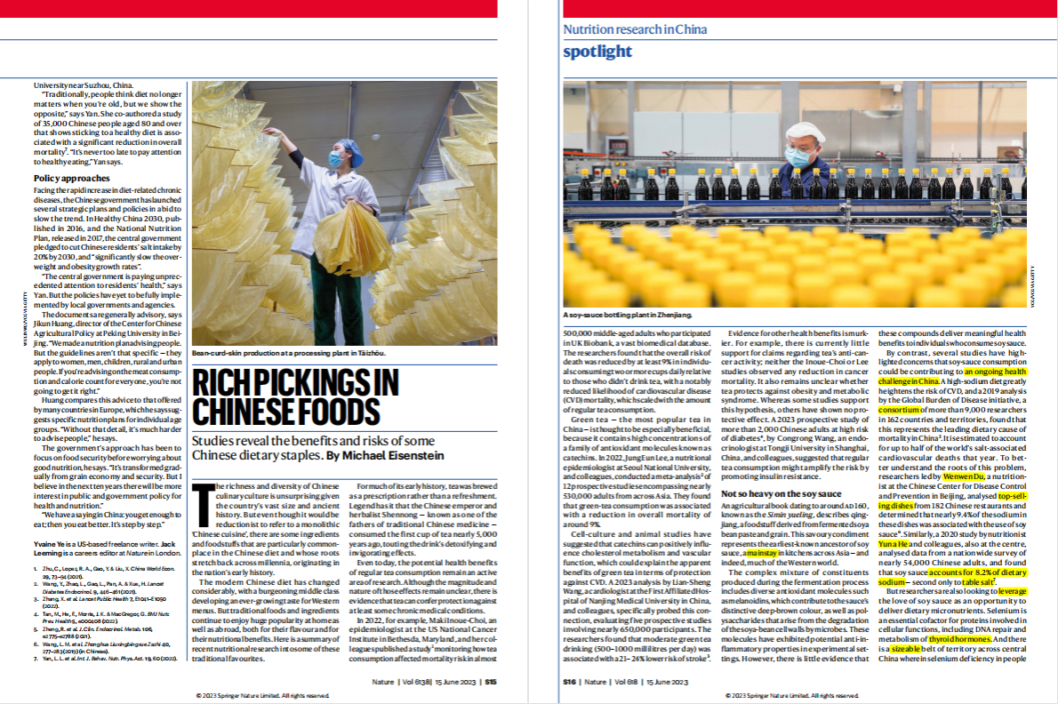 6月15日,在《自然》刊发的文章“RICH PICKINGS IN CHINESE FOODS”中提到,“研究人员也在寻求机会,利用人们对酱油的热爱来提供膳食微量营养素。比如位于镇江的开云足球体育_开云足球(中国)食品科学家高献礼等研究人员一直在探索生产富硒酱油的可能性。”硒是参与细胞功能——包括修复DNA和甲状腺激素代谢——的蛋白质的必需辅助因子。此外,在中国中部有大片地区由于土壤中的硒含量较低,人们缺硒问题严重。高献礼及其同事注意到,酱油提供了一种极好的生化介质来传递具有高生物利用度的硒,他们用一种富硒杂交大豆变体开发了一种制剂,可以让每份酱油中硒的含量增至原先的10倍。